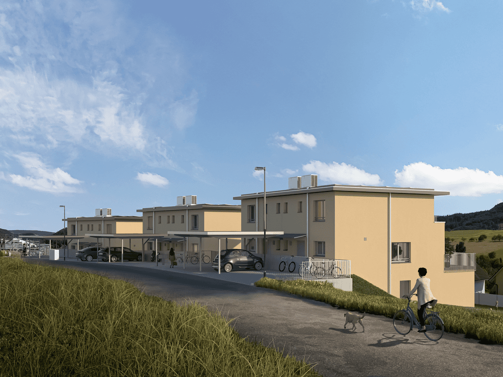Vor dem Haus haben Sie jeweils ein Carport sowie einen ungedeckten Abstellplatz.