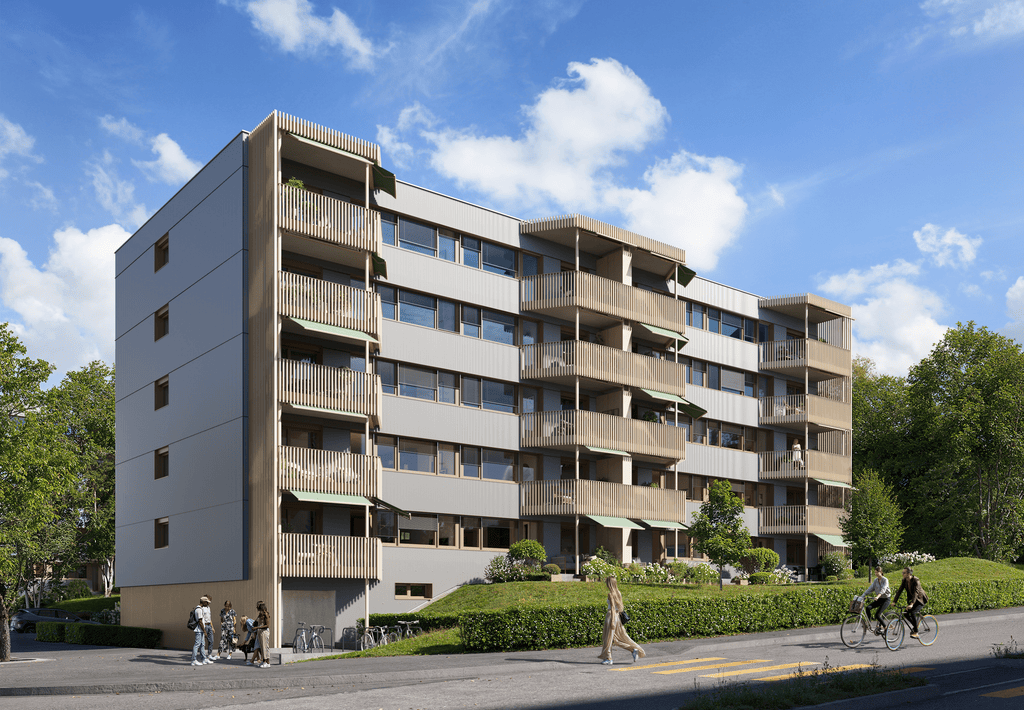 Zusätzlich vermieten wir 7 Kellerräume im Untergeschoss sowie 34 Einstellplätze, einige davon vorbereitet mit Flachbandkabel für die Ausstattung mit E-Ladestation. Allen Mieterinnen und Mietern steht ein Velokeller zur Verfügung.