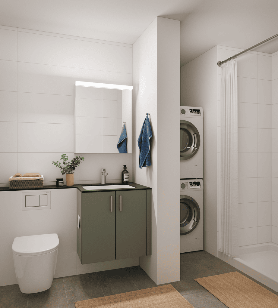 In allen Zimmern gibt es Parkettböden sowie eine Aussenfläche (Balkon oder Sitzplatz). Die grosszügigen Küchen mit Induktionsherd und modernen Geräten laden zum Kochen, aber auch zum Verweilen ein. Die Komfortlüftung sorgt dafür, dass Sie sich zu jeder Jahreszeit wohl fühlen und die Bäder punkten mit schönen Duschen. Alle 4.5-Zimmer-Wohnungen bieten zudem einen eigenen Waschturm.
